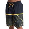 トロピカル柄とソリッドカラーを配したパネルデザインのサーフパンツです。ウエストはゴム+ドローコード仕様になっております。